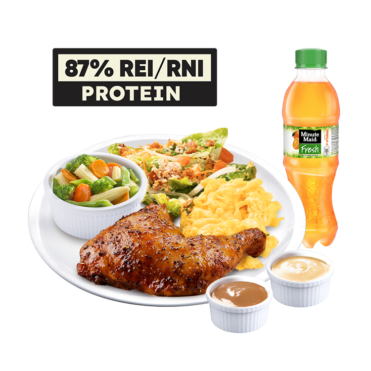 All Healthy Plates from Kenny Rogers Roasters follow Recommended Energy and Nutrient Intake (REI/RNI) guidelines—daily benchmarks that indicate how much energy and nutrients the body needs. REI and RNI help show how a meal supports these needs, making it easier to choose plates that offer more protein, more fiber, or fewer calories, depending on what your body requires.
