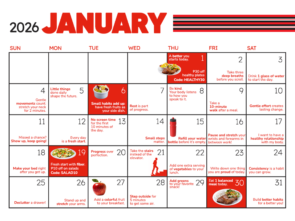 Get your I Love Me Better 2026 Calendar for FREE when you dine in with a minimum ₱800 purchase starting December 15, 2025 until supplies last!